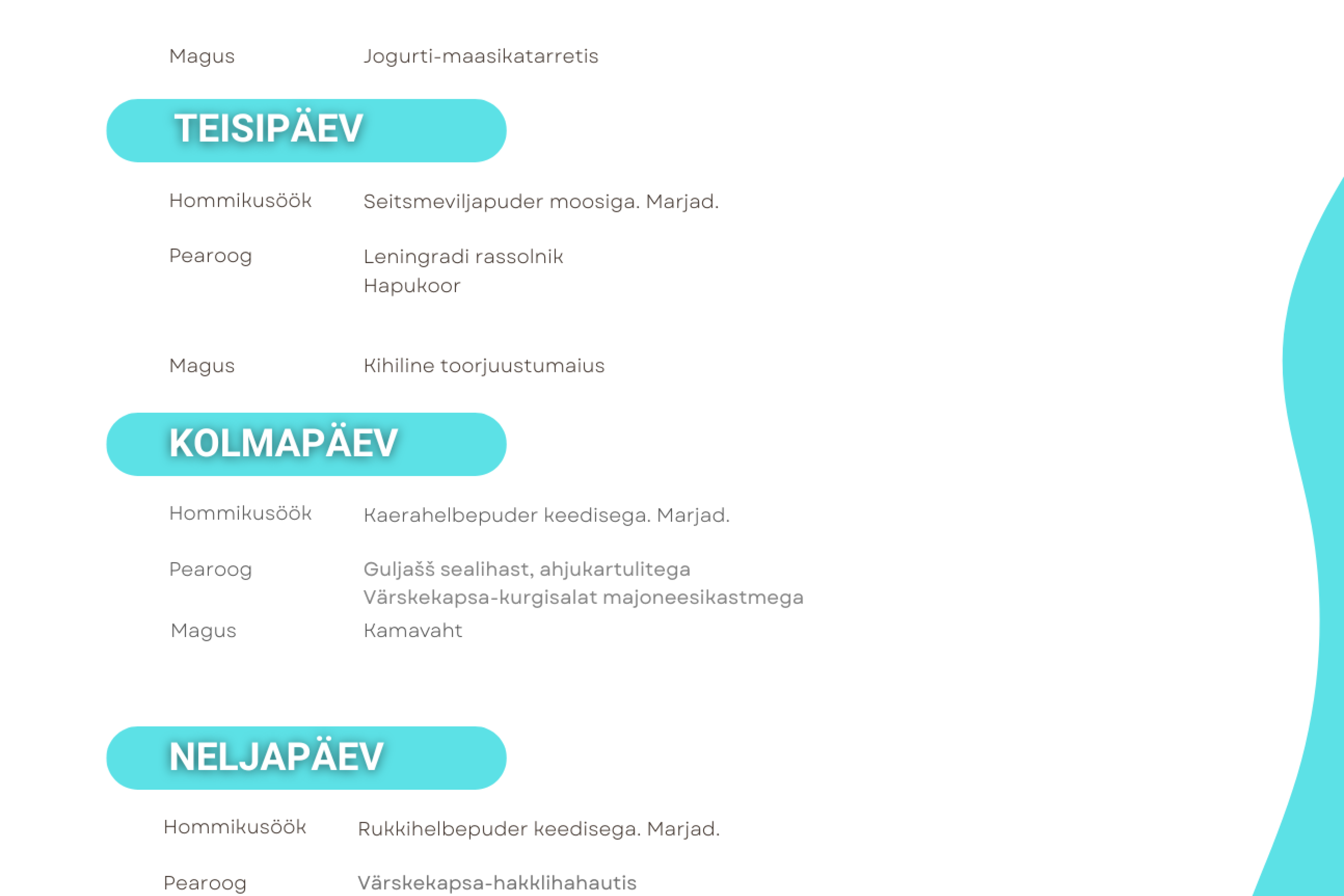 - Hommikusöök: Rukkihelbepuder moosiga. Marjad.
